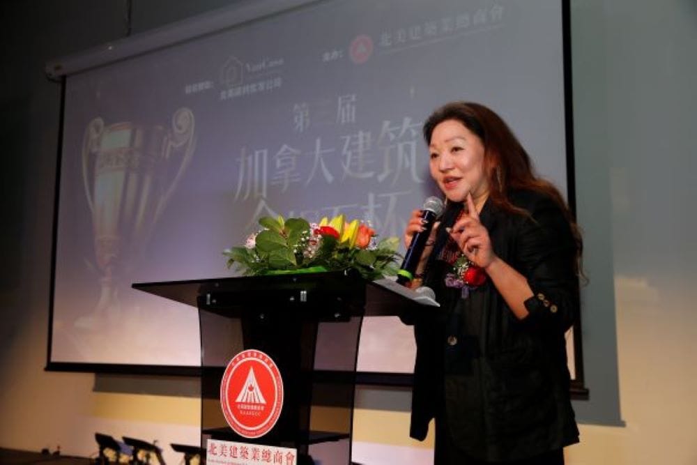 本届金刚石杯颁奖总统筹/冠名赞助VanCasa(北美建材)巩莉女士致词,她说:我们北美建材批发公司Van Casa Building Supplies Corporation在这里首先感谢北美国际建筑总商会创办的建筑"金钢石”杯颁奖盛典,我们公司2年前曾获得“金刚石”杯的金奖。两年来受到社会的关注,得到建筑业界的支持,显著提高经济效益促进公司发展、在行业中领先,今年公司报名參选笫三屇建筑金钢石杯评选,为了更好的扩大公司的业务及知明度,再创更大的业绩,为社会和建筑行业做出页献和力量!我荣幸的为第三屇“金钢石”杯的冠名赞助。同时也是本次活动的总统筹。
