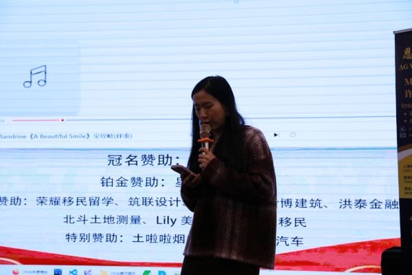 江西不仅有美景,当然还有动听的山歌。听,董思宏,江传瑜的兴国山歌《打个山歌过横排》,有点客家原滋原味;来点现代的:听,江边百合的中英文诗朗诵《再别康桥》 (由边志强,江传瑜,Lily Li(李莉) 和 Lily Li (李丽)表演, 中文朗诵央视水平; Gabriel Zhu 现代舞《K-Pop》, 活力四射;张旭的独唱《君》和 Sandrine的独唱《A Beautiful Smile》,深情动听;Bonnie两人组合的游龙拳,刚柔并济;赣韵辣妹团《小城大爱+护花使者》(黄文娟,龚芸,范丽娜,蔡玉,董思宏)五人小组的集体舞,整齐划一,舞出了水平,舞出了辣味, 舞出了优美,把演出推向高潮,台下鼓掌不断; 西岸财富徐作春先生(清华校友)的萨克斯独奏《贝加尔湖畔》,把清华才子李健灵动的神仙旋律优美的呈现。节目在大合唱《友谊地久天长》中圆满结束。