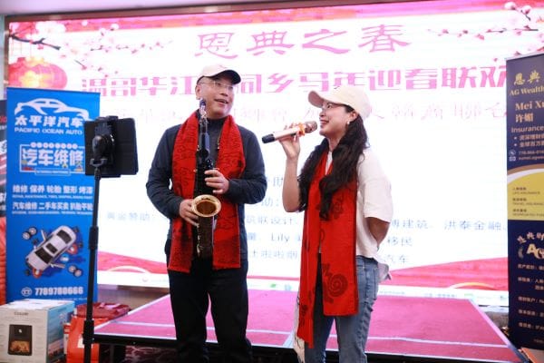 联欢会少不了精彩节目。开场由Ella,Maggie两位小朋友,向大家表演了儿童双人舞《小格格》。《小格格》是优美的民族舞蹈,瞧她们,行步优雅、舞步轻盈, 充满了活力和朝气。接着是老会长程关民的萨克斯独奏《散步+雨蝶》,和《年轻的朋友来相会》熟悉的音乐把现场带回到了那个激情飞扬的80年代。
