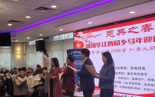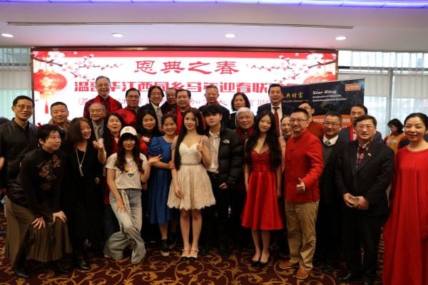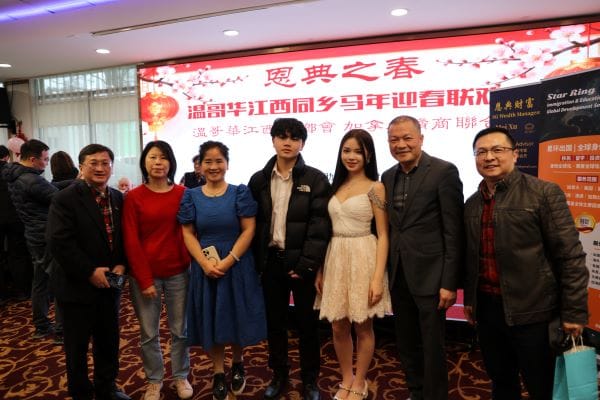 【高度传媒江传瑜报道,摄影Alan Cao, 曾庆芬等】灵蛇辞旧岁,骏马踏春来。2026年2月21日大年初五,在中国传统里,是吃饺子,迎财神的好日子。由温哥华江西同乡会,加拿大赣商联合会共同主办的“恩典之春马年迎春联欢”在温哥华敦煌飞天酒店圆满举办。超180位老乡欢聚一堂,共叙乡情乡谊,共度美好时光。本次联欢会,四代同堂,有上至93岁长者,有1岁多小朋友,赣鄱一家亲,其乐融融。