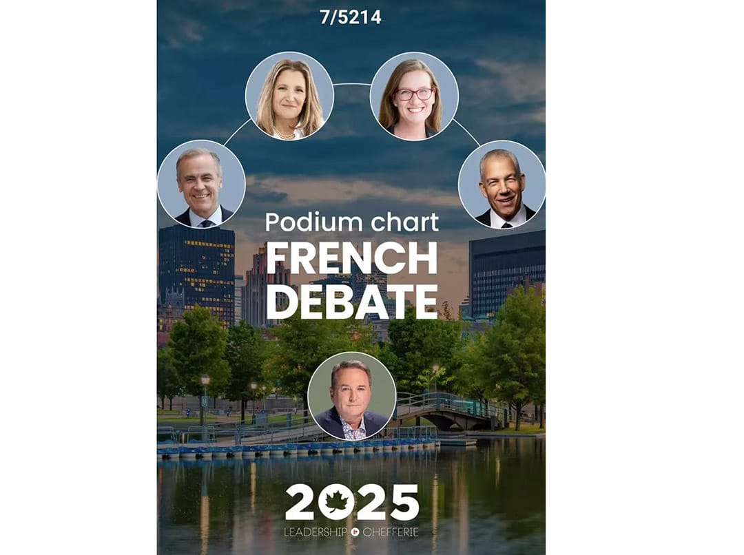 而率先登场的则当属加东时间2月24日晚上八点在蒙特利尔举行的法语辩论,由前魁北克电视台主持人Pierre Jobin主持,出席的联邦自由党领袖候选人包括前加拿大和英国央行行长卡尼(Mark Carney),前副总理兼财政部长方慧兰(Chrystia Freeland),前国会党团领袖古尔德(Karina Gould) 和前国会议员贝里斯(Frank Baylis)。