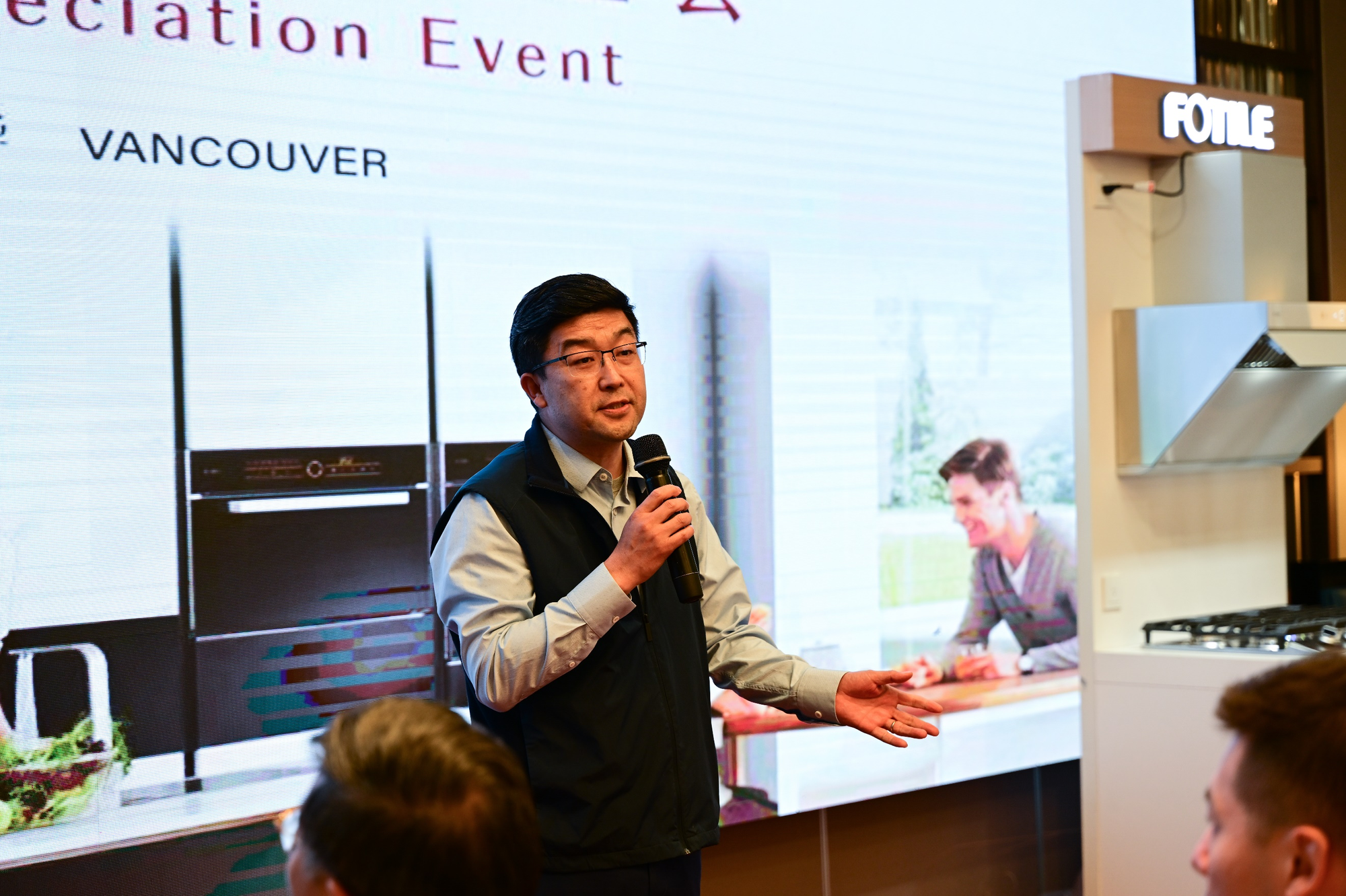 随后,方太温哥华经理Michael在发表获奖感言时说道,方太温哥华能获得今天的成绩,要归功于方太温哥华团队以幸福为纽带与当地消费者的深度连接,以及方太加拿大的品牌科技管理赋能,和社会各界朋友的鼎力支持。方太始终秉承着将厨房作为分享爱与幸福的乐园,心系每一位家庭厨师的创作环境以提供舒适安心的烹饪空间。留住家中的烟火气也是方太产品最大的价值。发言最后,Michael代表方太温哥华全体员工再次向现场嘉宾的到来致以诚挚的感谢。