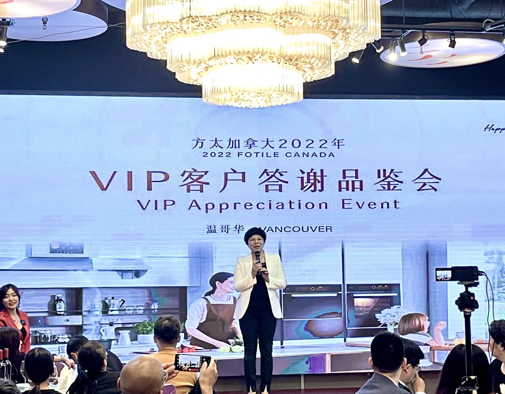 方太加拿大负责人Lydia Yang女士在随后的发言中同样以感恩为致辞的主旨,七年方太落地温哥华,感恩温哥华消费者对方太品牌的认可,感恩社会各界对方太的厚爱。方太温哥华作为加拿大西海岸最重要的营销节点,承载着向加西市场发扬方太文化,推进和提升高端厨电领域发展的使命,并以“专业、高端、负责”的服务理念为BC省及周边地区消费者带来优秀的厨电产品和完善的配套服务。基于这样的使命,温哥华团队在2021年携手努力,完美的达成了销售业绩高速提升110%并获得年度最佳团队奖。