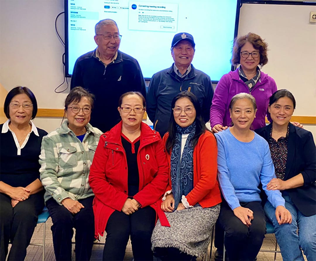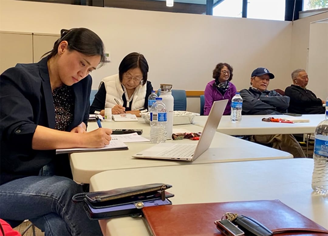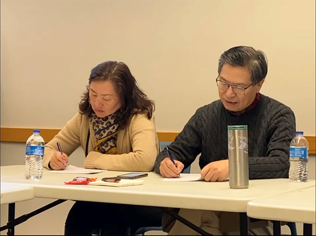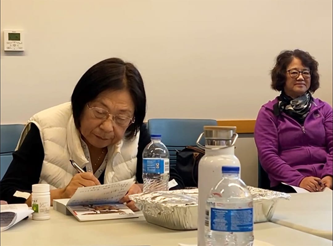 融融老师前一天晚上冒着暴雨,翻山越岭,开车五个多小时从华盛顿州东部的斯波坎赶到西雅图。笔会会员文华、肖文夫妇主动承担起会场技术支持的重任,带着设备从华盛顿州温哥华最先赶到会场,登录云端,调试音响,确保最佳的影音效果。现场主持人金玲与线上主持人韩长福进行了最后的协调沟通,苑丽华则贴心地为图书馆现场送来了点心和水果。所有准备就绪,讲座准时开始。写作坊的导师、学员、各兄弟姐妹文学社团的带头人、顾问、会员等近50位文学爱好者齐聚,线上线下共襄盛会。