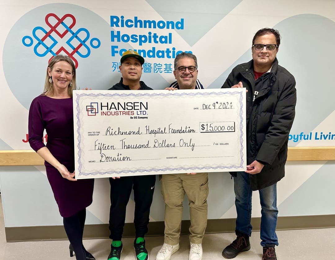 【加拿大高度传媒讯,列治文医院基金会报道】2025年1月14日,Hansen Industries Ltd.向列治文医院将会新建的急症护理大楼—Yurkovich家族大楼捐赠15,000元,践行其对支持社区医疗的坚定承诺。