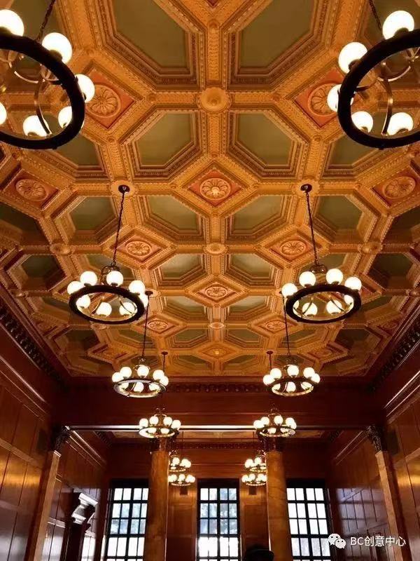 图书馆内的细节设计也更是让人为之赞叹。无论是边角的钩刻,还是随处可见的门把手,都会让人感受到细节之美。这一沟一壑之间的关系,也似乎在诉说着这历史长河中的那些不为人知的故事与秘密。
