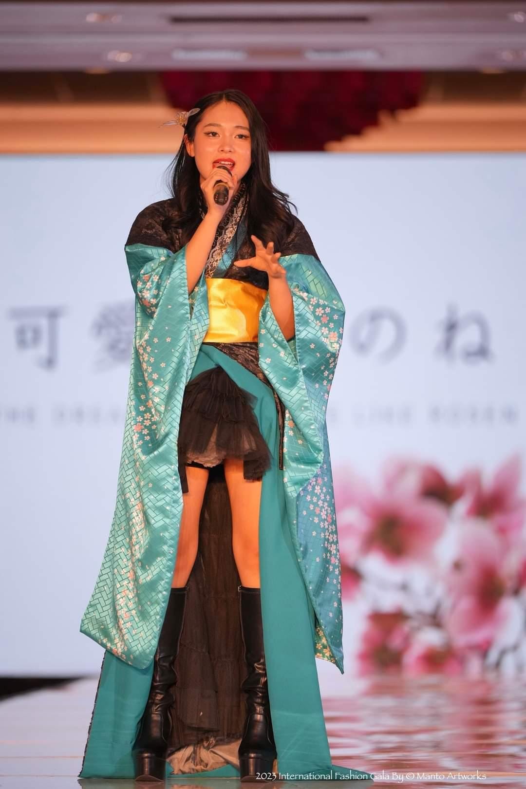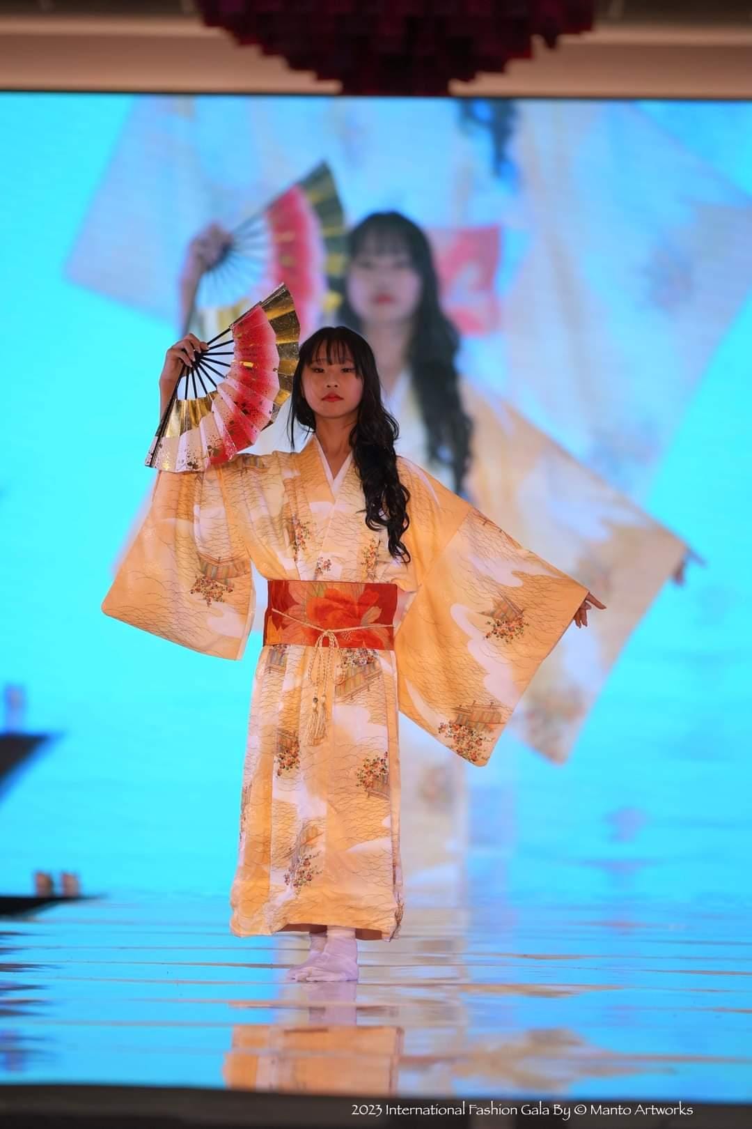来自日本儿童时装周的模特在舞台上展示才艺