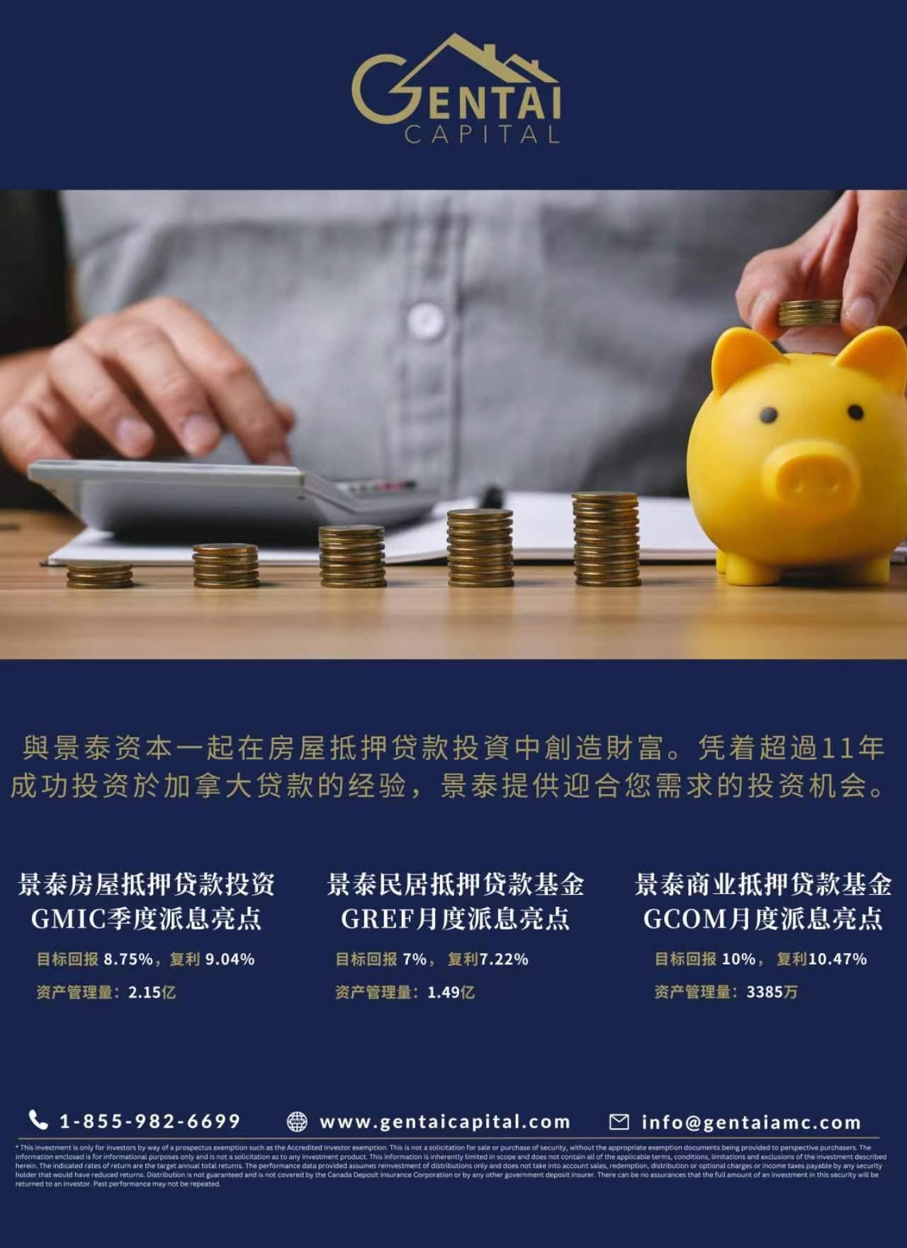 Matthew:在投资市场中,有多种投资方式,在加拿大,房地产市场是非常好的投资标的,科技公司股票、金融衍生品等高风险的投资是⼀种选择。我们更倾向于保守的投资策略,建议客户充分利用已积累的资产,将其投资于相对低风险、稳定回报的投资标的。尽管⼀些高风险投资可能带来短期高回报,但考虑到资产保值增值的长期目标,我们不建议过多涉足高风险领域。大温地区的房地产市场是非常好的投资标的,宜居的环境以及新移民的涌入,会之持大温地区的房地产稳定发展。我们景泰深耕的房屋抵押贷款投资,是⼀个非常好的投资方式,我们的投资以加拿大主要核心城市的房地产价值为基础,天然具有资本保值的优势,稳定的定期派息也能很好的之持投资人对现金流的需求。对于普通投资人,我建议采取相对保守的投资方式,以保障已有资本的稳健增长。高风险高收益的金融、科技投资,比较适合大型投资机构,用资本规模去分散风险,不适合普通投资⼈。如普通投资⼈确有需求,建议只能投入非常少(10%以内)的资产,以控制整体的投资风险。