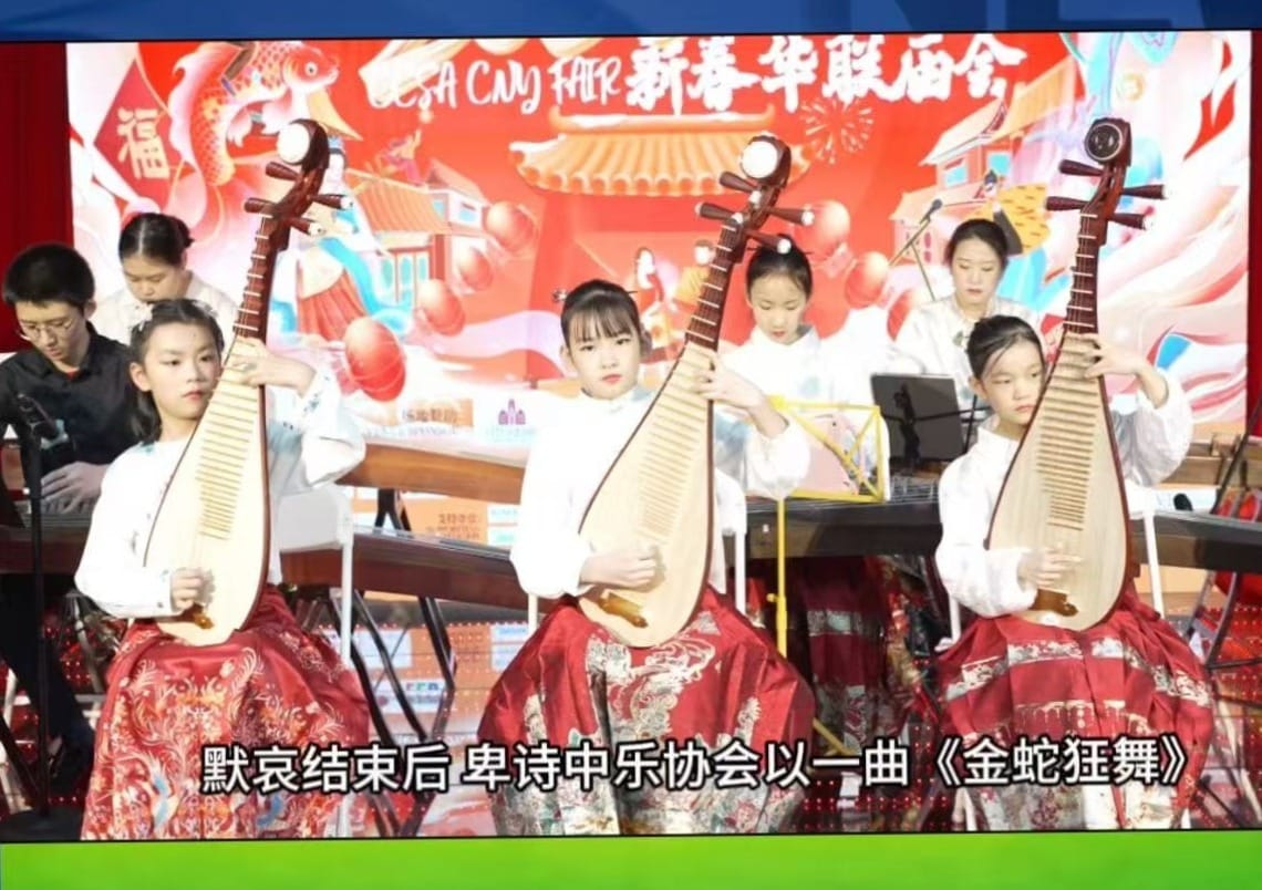 活动伊始,现场气氛庄重肃穆。主持人在开场后特别引导全场嘉宾与观众起立,为近期在Tumbler Ridge发生的悲剧中的遇难者默哀一分钟。作为卑诗省的一员,这场新春庆典在欢庆之余,更传递出社区与受灾民众同心同行、守望相助的温情与力量。默哀结束后,卑诗中乐协会以一曲激昂的民乐合奏《金蛇狂舞》拉开活动序幕,欢快的旋律瞬间点燃全场热情,寓意着在沉静中积蓄力量,以祝福开启新程。