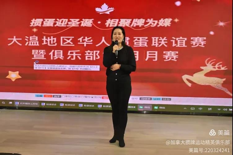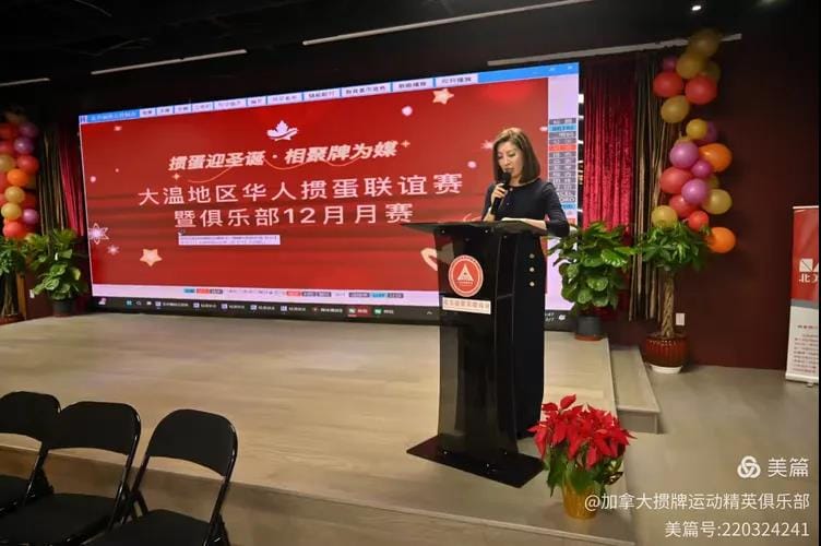 “掼蛋、品蛋、迎圣诞” 这一场冬日赛事,不只是竞技的较量,更是社区的凝聚、朋友的重逢、温暖的传递。特别感谢所有志愿者 (建萍、许萍、coco、Lydia)、协办单位及到场嘉宾的大力支持!本次活动由温哥华著名主持人梁卉女士担当,主持井然有序,简单明了,气氛轻松活跃。