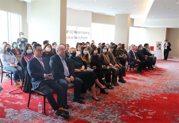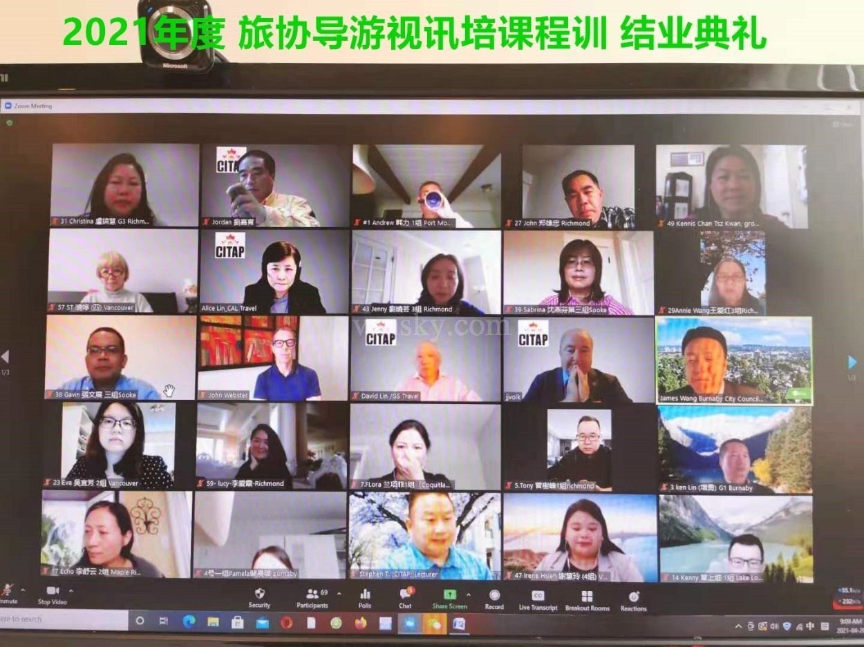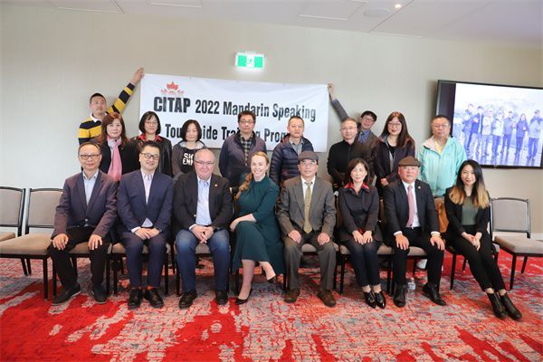 【高度传媒江传瑜摄影报道】2022年4月29日上午,加拿大亚太入境旅游协会(CITAP)第六届华语导游培训班结业典礼,在线上线下“隆重”召开啦。因为,这是自2020年疫情爆发以来,CITAP的第一次线下结业活动。今天的结业典礼,政府嘉宾,旅游界资深人士,企业老总,授课老师,结业学生欢聚一堂,会议室座无虚席,线上还有近30多人参加,预示着加拿大旅游业即将恢复启航,为报复性反弹做好准备。当地多家媒体现场报道。