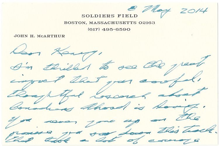 一封微微发黄的亲笔信引出了对离世不久的哈佛商学院第七任院长约翰·赫克托·麦克阿瑟(John Hector McArthur)最真挚的回忆与追思。