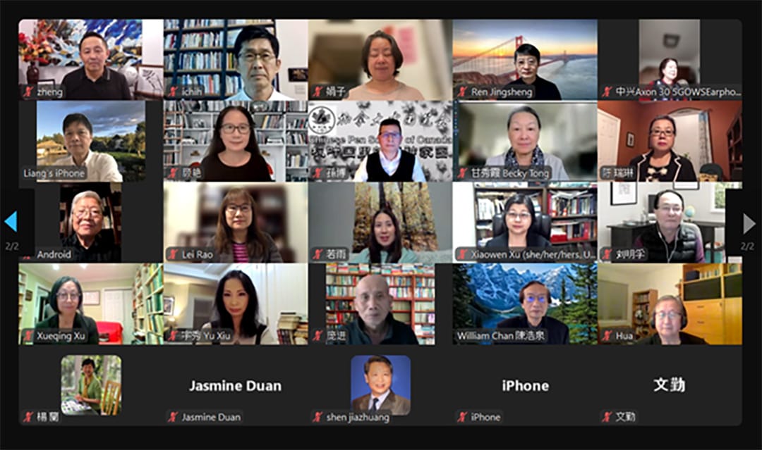 11月9日,我们在云端追思痖弦。由加拿大华人文学学会暨《华章》编委会主办,加拿大大华笔会、加拿大中华诗词学会、加拿大华裔作家协会、加拿大朗诵表演学会、加拿大高度传媒、世界华人周刊协办的痖弦追思会在Zoom云端成功举办。来自加拿大、美国、中国大陆、台湾、香港及痖公故乡南阳的60余位作家、诗人、学者、文学评论家参加了这场追思会。痖弦昔日战友、《创世纪》三架马车之一、硕果仅存的张默先生以视频发言形式出席了老友追思会。中国作家协会前副主席、中国现代文学馆前馆长陈建功先生因错不开时间发来视频发言。