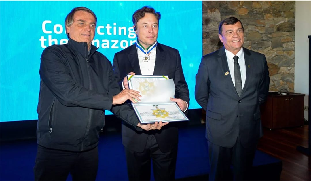 当年5月20日,马斯克出人意料地前往巴西,与总统一起宣布了一项重大消息。他们在圣保罗附近的一个度假胜地举行的活动上说,星链即将进入巴西,它将为1.9万所农村学校提供互联网连接,并对亚马逊丛林进行环境监测。博尔索纳罗给马斯克颁发了一枚奖章,称他是“真正的自由传奇”,因为他当年竞购了Twitter。