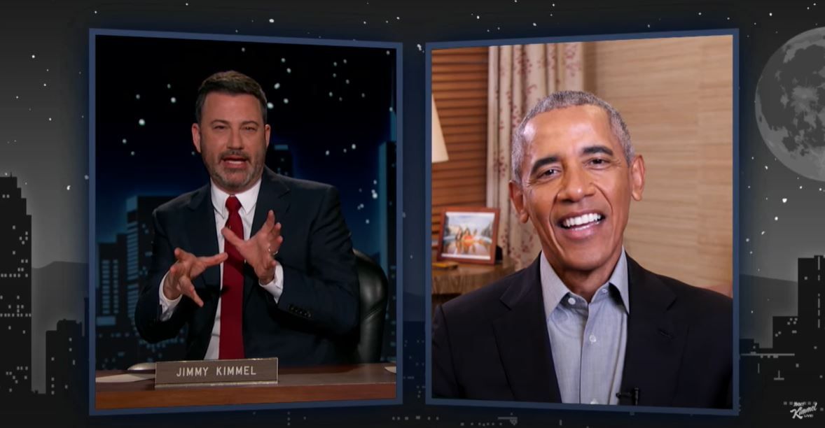 Jimmy Kimmel提到,现在声称拜登赢得大选还为时尚早,因为特朗普在多个摇摆州发起了诉讼,声称投票过程中存在欺诈现象,认为这次大选被人为操控了。他问奥巴马:“你觉得现在就向拜登和贺锦丽表示祝贺,是不是有点太早了?”奥巴马说:“我觉得不早,这个时间正合适。”