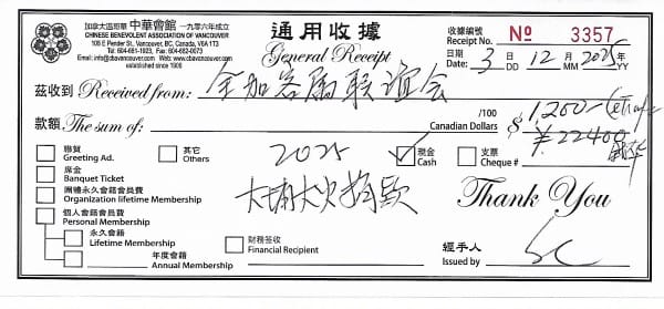 2025年12月3日,全加客属联谊会永远荣誉会长朱展伦先生,执行会长江传瑜先生,带着客家乡亲的赈灾款,来到了中华会馆,汇集后由中华会馆统一转交香港特别行政区政府大埔宏福苑火灾专项基金会。
