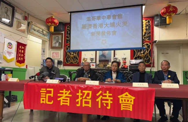 【高度传媒江传瑜报道】香港大埔宏福苑于11月26日发生近十年来最严重的五级火灾,造成特大伤亡和居民失去家园,灾情牵动全球华人关注。温哥华中华会馆于27日召开紧急记者发布会,宣布正式展开募捐和援助行动,呼吁侨界和社会社区伸出援手,共同支援灾区。