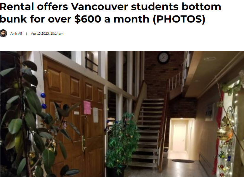 学区附近一屋难求已经见怪不怪,精打细算的房东们已经开始把上下铺放进房间里来让学生们合租了!最近一则在Craigslist 上的广告吸引了学生们和租房者的目光,这则广告由自称是“UBC 校友”的人发布的,他在过去几年中为 UBC 和其他学生提供了“一个安全的、以家庭为导向的住所”。