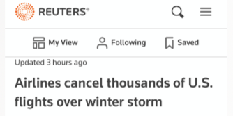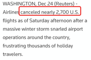 因为暴风雪原因,美国周六一上午狂砍近2700架次飞机。