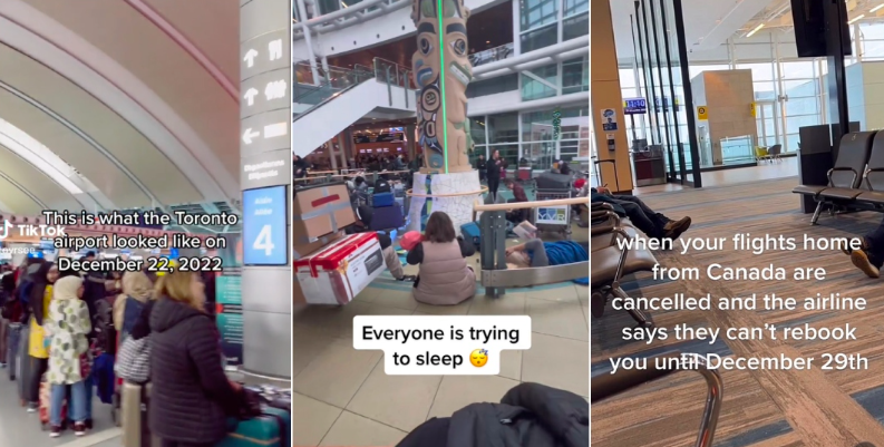 周四,多伦多皮尔逊国际机场和温哥华国际机场开始出现混乱的状况。由于冬季风暴袭击,大量航班停飞,机场挤满了被滞留的旅客。