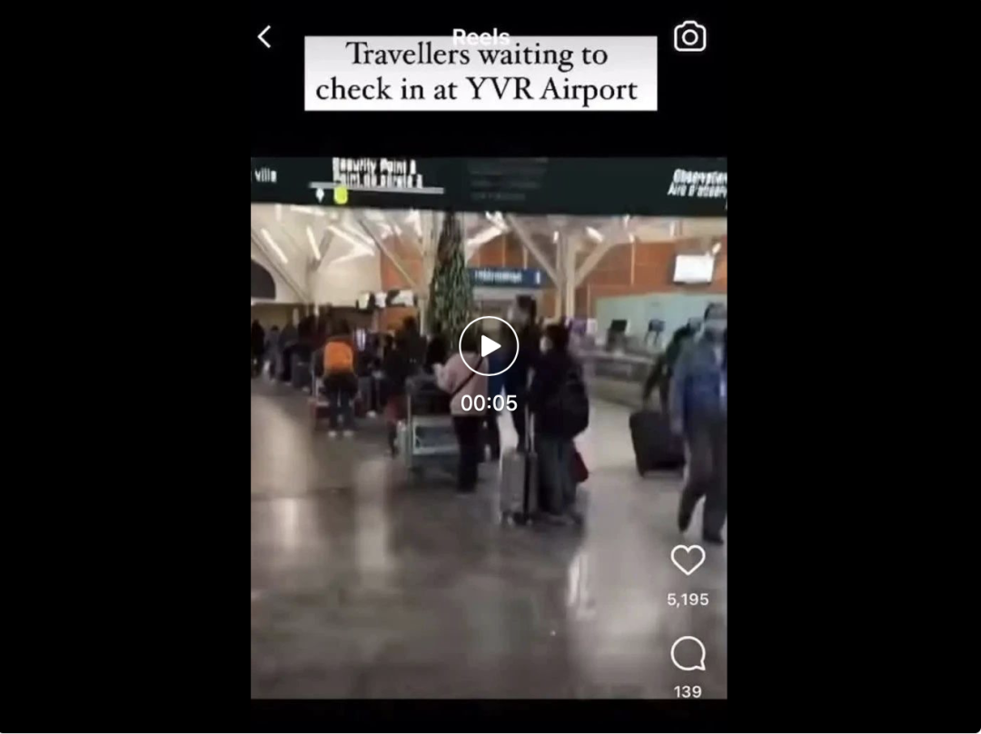 温哥华国际机场(YVR)大排长龙,人满为患: