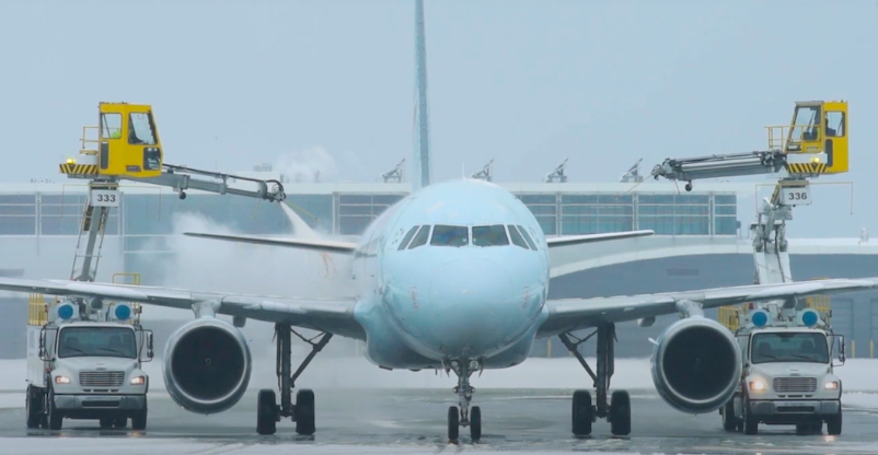 温哥华国际机场飞机除冰。(图自:YVR)