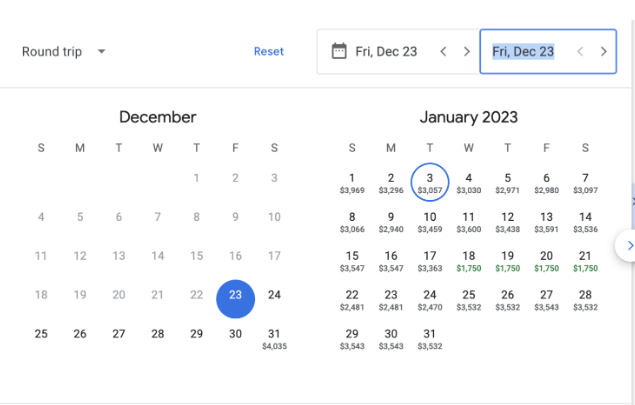 Expedia、Google Flights和Skyscanner上出售的机票从3500加元到8300加元不等,具体取决于出发和返回的日期。目前来看,从温哥华飞多伦多最昂贵的时候是平安夜和一月份的大部分时间。