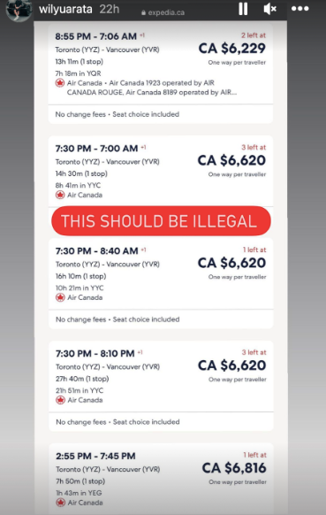 搭乘加航从多伦多飞温哥华的单程机票,要价6620加元。网友Wil Yuarata气炸,直言“这应该是非法的。”