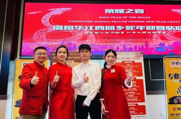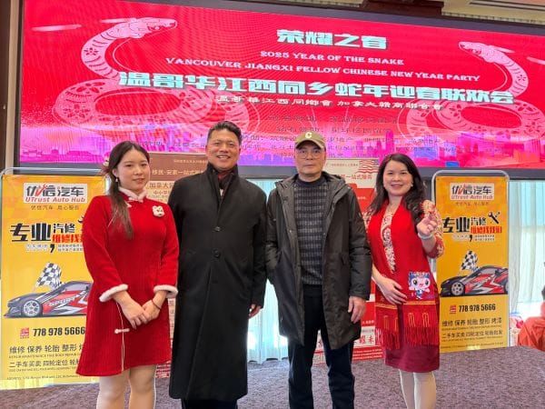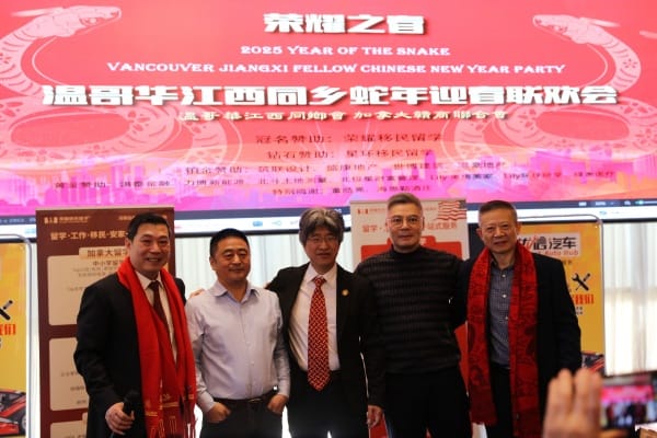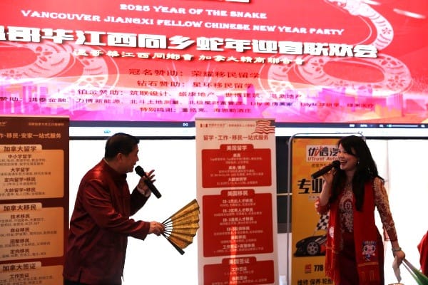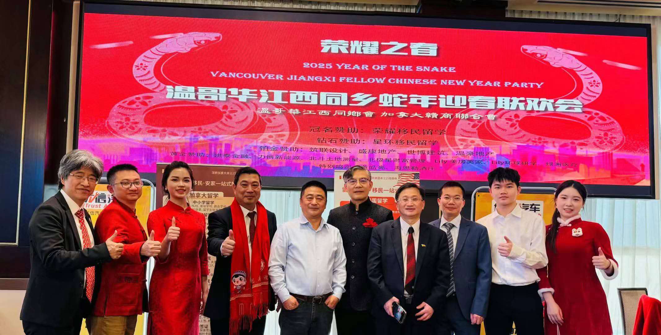 【高度传媒江传瑜报道,摄影 Alan Cao,孙怀远,肖礼斌等】祥龙腾空辞旧岁,灵蛇献瑞迎新年。2025年1月25日,由温哥华江西同乡会,加拿大赣商联合会共同主办的“荣耀之春蛇年迎春联欢”在列治文粤海华庭酒店成功举办。近150位老乡和兄弟社团人士欢聚一堂,共叙乡情乡谊,共话未来美好。