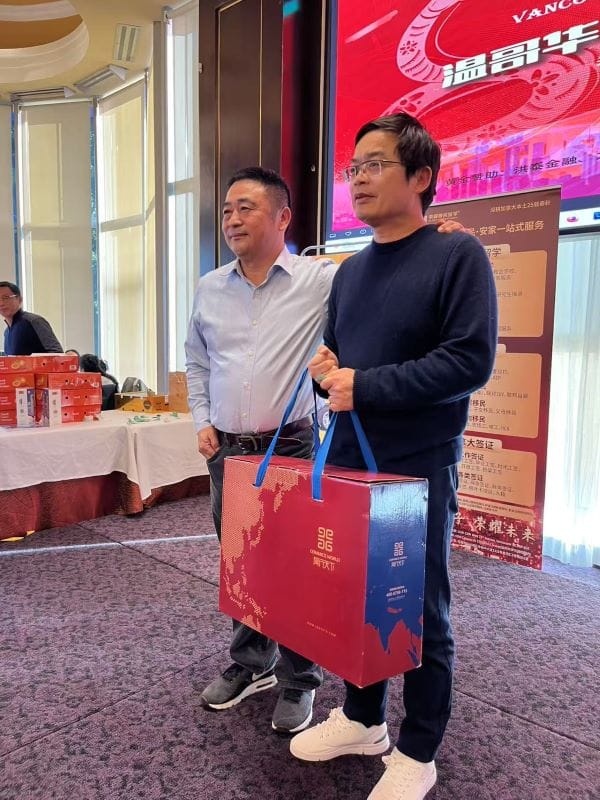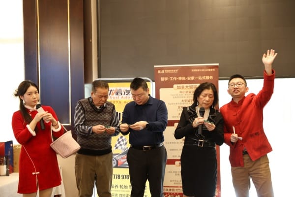 本次联欢活动,又适逢同乡会第11届,赣商会第3届换届。经过民意测验,执委会投票,第10届温哥华江西同乡会会长肖礼斌继续连任11届同乡会会长。同时,他也被一致推举为加拿大赣商联合会第3届会长。两幅担子一起挑,祝愿肖礼斌在本届任期内,会务蒸蒸日上,团结更多老乡,凝聚更多朋友,联谊互助越来越好。加拿大赣商联合会一致通过创会会长张荣华先生为永远荣誉会长。在此表示热烈祝贺和良好祝愿!老会长潘维克在祖国也发来视频,祝贺联欢活动圆满,祝福老乡新年。