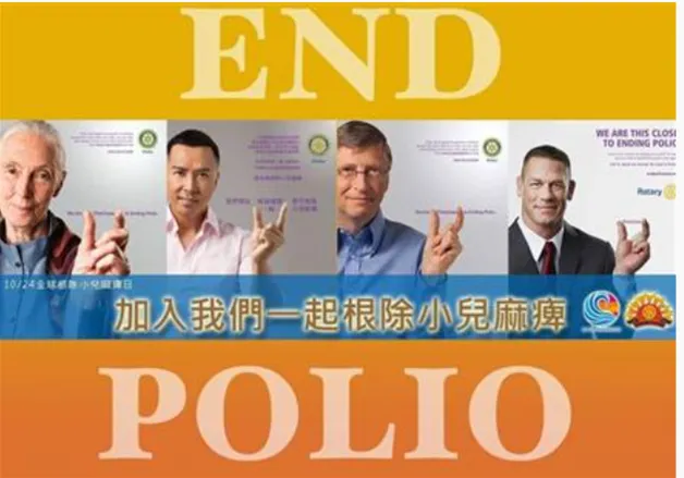 通过扶轮社七大活动目标,和平、卫生疾病、水、母亲和孩子健康、教育、社区经济服务、环保实现统一大目标消除小儿麻痹症,只要一点点,一点点。