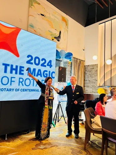 本次活动汇聚了来自国际扶轮社的代表、华人国际扶轮社的董事/会员。同时,加拿大政府的代表和社会各界贵宾共同出席了本次活动,活动高度赞扬了2023~2024年度主席Cindy Liu和团队在过去一年中所取得的杰出成就、对新主席 Nancy Lina Fan 的当选表示了祝贺,也共同见证了这一隆重的就职仪式。