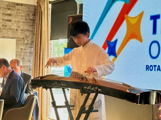 由GREEN FUTURE环保社团Daniel和Leah弹奏的古筝古曲拉开了活动的帷幕。优美的旋律伴随着大屏幕上滚动的视频,展现出世纪扶轮社的力量和活力。