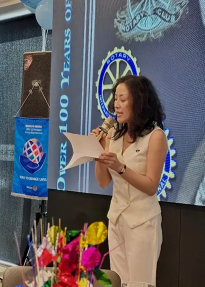 Cindy表示,现在将接力传递给Nancy Lina Fan,为世纪扶轮社带来新的希望和方向,并对未来的俱乐部发展充满信心。