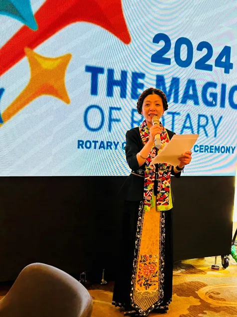Nancy Lina Fan在致辞中表示:“今天能在这个特殊的场合看到这么多亲切的面孔,被这么多仁爱的人包围,真的令我备受感动。作为Rotary Centennial Club的新任主席,今天不仅仅是我个人的重要时刻,也是世纪扶轮社的珍贵时刻。”