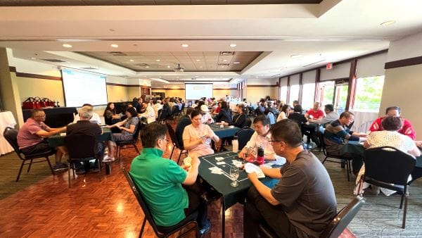 本次月赛,强手如云,聚集了在温哥华的众多高手。由于受到场地限制,本次月赛控制人数100人。中午时分,选手陆陆续续进场报到就坐,比赛前,主办方代表刘斌副主席致辞:本次活动由加拿大掼牌运动精英俱乐部主办,恒昇金融集团协办,加拿大鼎盛地产冠名赞助,并得到了Quilchena Golf and Country Club的大力场地支持。同时,活动还受到江苏省掼蛋运动协会和中国掼蛋研究院的悉心指导。在此,我谨代表加拿大掼牌运动精英俱乐部理事会,向鼎盛地产、所有荣誉会员、各支持单位及在座嘉宾,致以最诚挚的感谢!