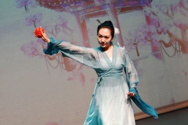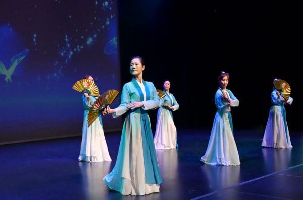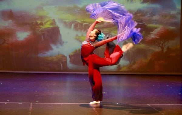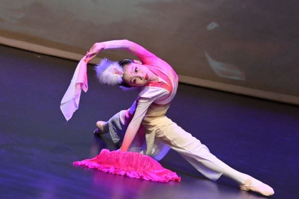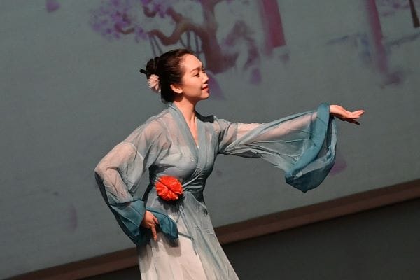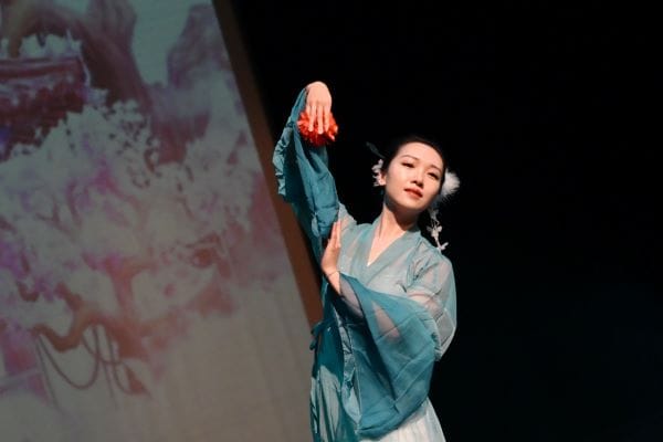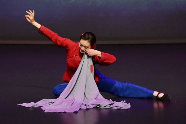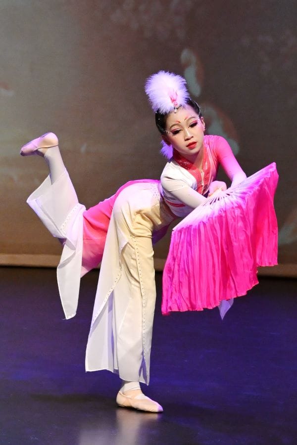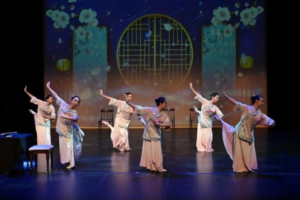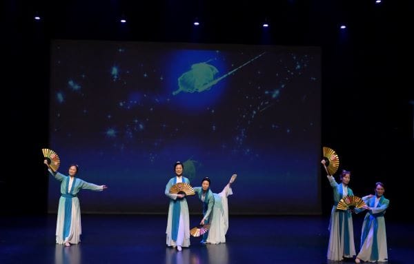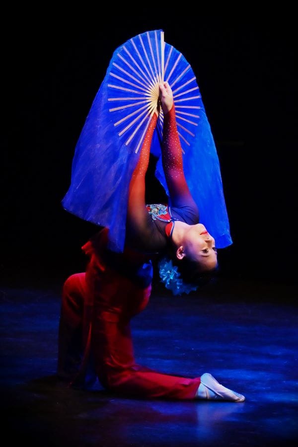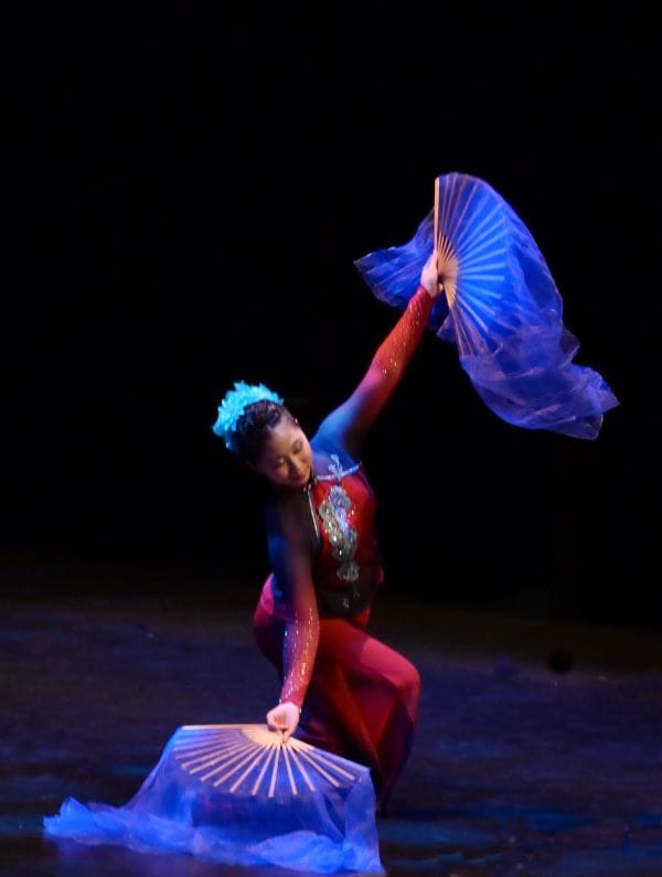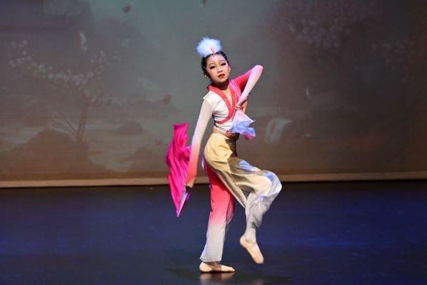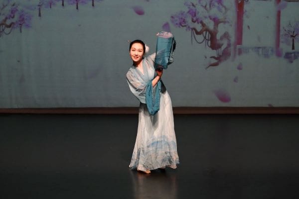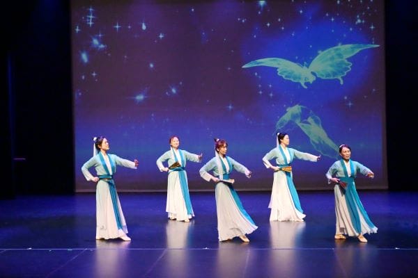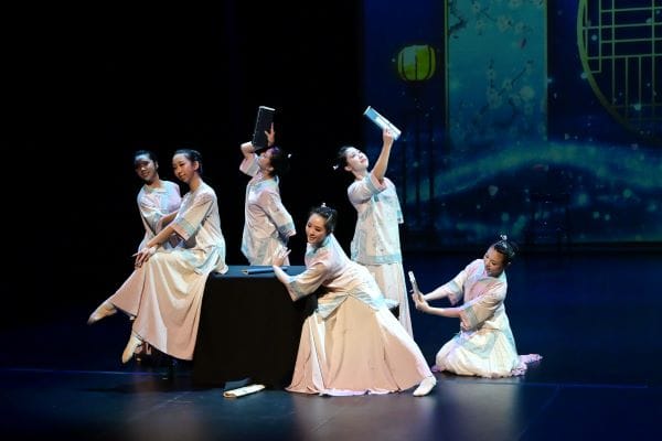 第十场古典舞《梁祝》该剧取材于家喻户晓的中国民间经典爱情故事《梁祝》, 以中国古典舞语汇构建作品内容,以意境化的方式、现代化的手法和简约的舞台视觉呈现,传达中国古典舞蹈的魅力和东方文学艺术的独特意蕴。以折扇作为道具,尽显舞蹈律动的优美之情,配合动作悠扬大气,飘逸轻盈。五位演员:Pamela Lai,Jenny Huang, Ada Li, Nancy Lan, Prinnie 表演认真,投入专注
