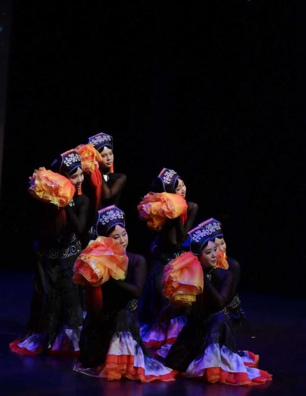 最后压轴彝族民间舞《生如夏花》,舞蹈以彝族女人面对生活时生如夏花般的坚韧为题材,如诗般讴歌女人犹如勤劳、勇敢、向真、向善的幸福之花,坚韧之花,绚烂之花,表达了人对命运的抗争和对生命的热爱。说到彝族,就会让我们想到高山,想到火把节,想到熊熊燃烧的火种。她们代表着热情,奔放,勇敢...六位演员:Jolie Wang, Cici Zhao, Yoland Fan, Katrina Hui, Kacey Wu, Michelle Li. 看看这些名字,你也许知道,她们压轴表演,是的,她们是今天的主角,台柱子。这些热爱舞蹈的孩子们,她们默默奉献,精心表演,可亲可爱。