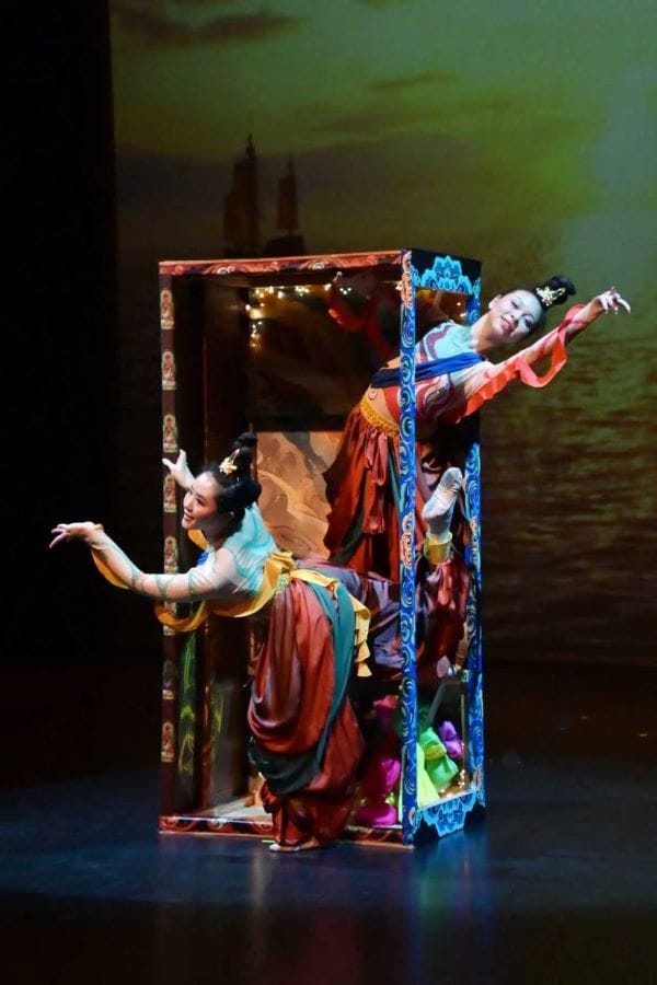 第十二场《敦煌舞》故园1900,也是洪杰老师当晚大作,精心设计,细心指导。《故园·1900》以1900年敦煌莫高窟藏经洞问世后所发生的一系列文物史为创作背景,讲述近代沉寂了百年的敦煌艺术,因藏经洞再一次受到世界瞩目,大量文物中“一双飞天”被装箱偷渡流失海外,望不见敦煌,望不见家的故事。两位演员:Michelle Li, Katrina Hui 对故事理解非常到位,通过翩翩舞姿,把故事娓娓道来,把场景表现的淋漓尽致...