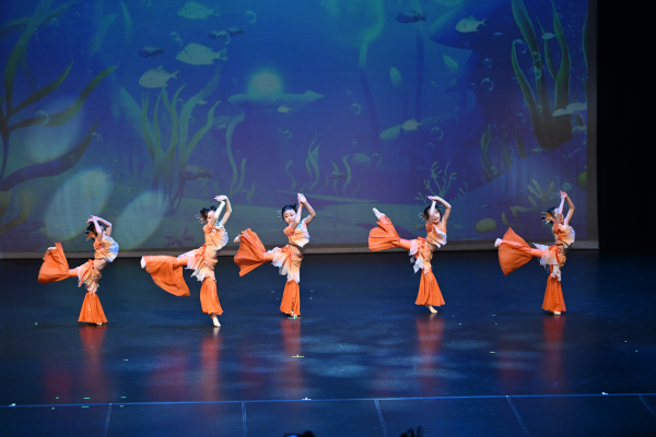 第六场《鱼》,表现中国民间的良好祝愿“年年有鱼”。五位演员:Gloria Dee, Serena Su, Olivia Liu, Xuanyu Ge, Xiwen Xu。舞蹈《年年有余》的造型取材于童话《美人鱼》中美人鱼纯洁、善良的形象,更取意于我国传统民俗中年年有余的寓意,鱼的形象活泼、可爱、灵动、唯美,符合我们中国人的审美要求,再加上丰富的舞蹈语言,创造出一幅流光溢彩、水波粼粼、鱼儿跳跃的欢快场面...