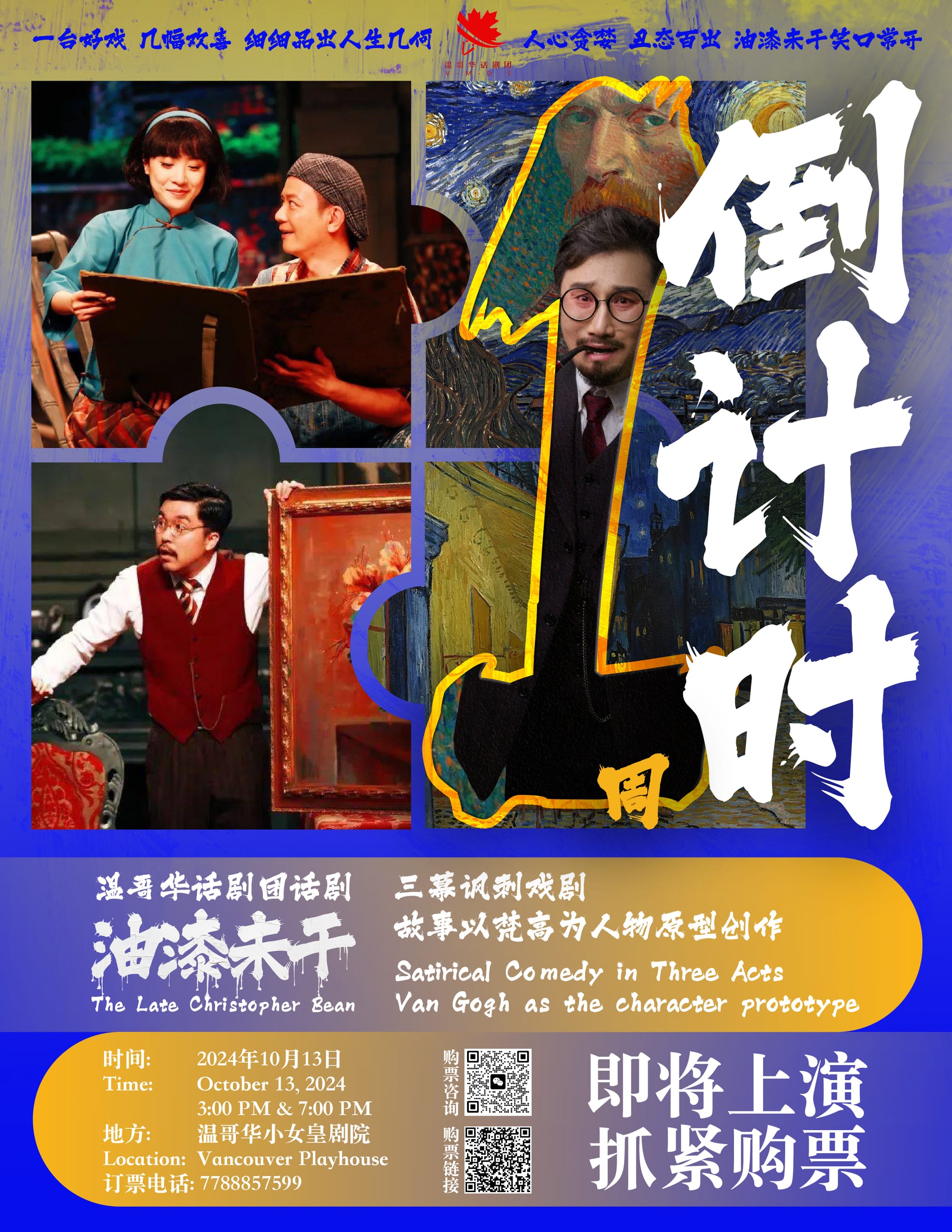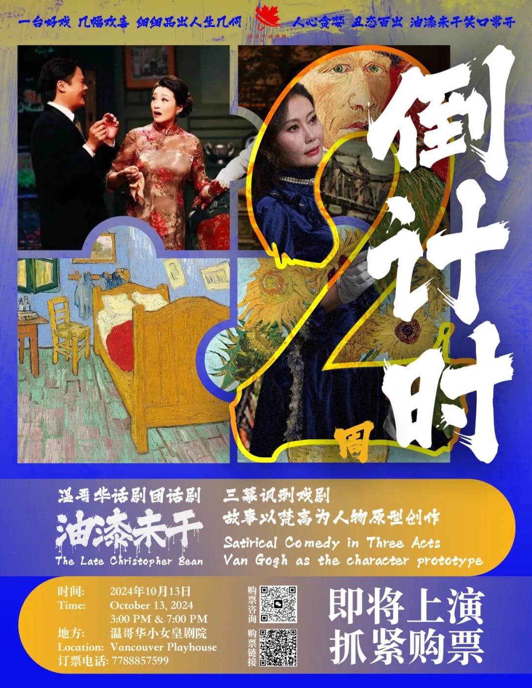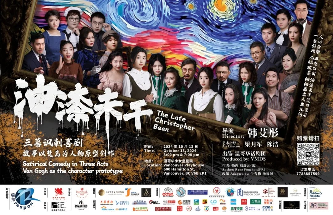 10月13号演出当天,除欣赏精彩话剧;还可凭门票在小女皇剧院二楼观看《致敬梵高走进他世界》沉浸式画展,并参与慈善义卖和拍卖,为BC儿童医院捐款。
