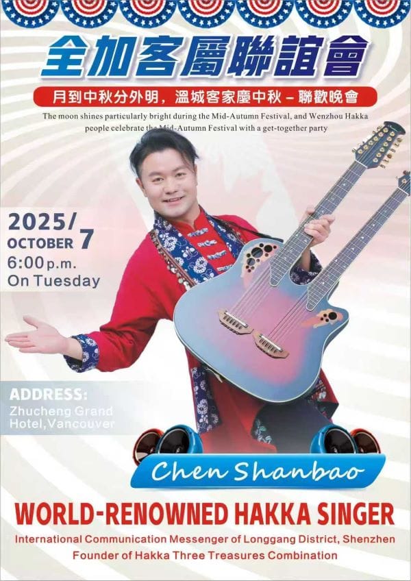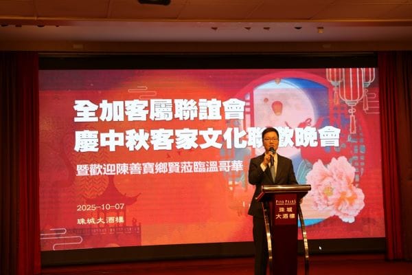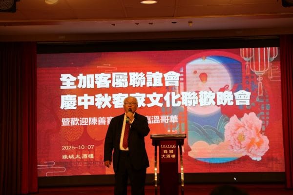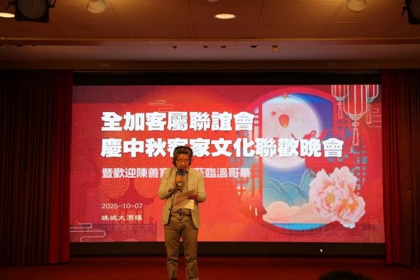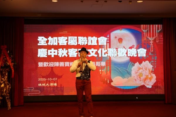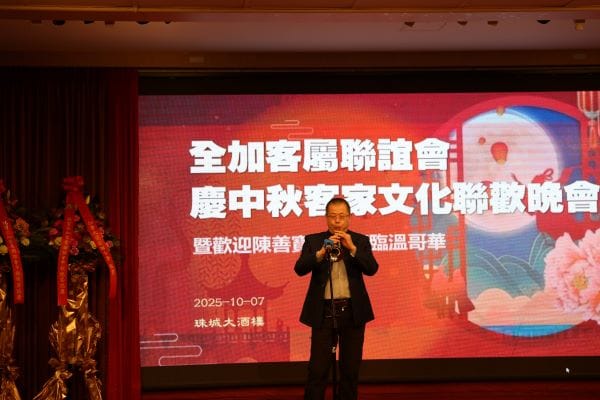 【高度传媒江传瑜报道,摄影Alan Cao, George Liang】俗话说:“十五的月亮十六圆”,2025年10月7日农历八月十六,全加客属联谊会在温哥华珠城大酒店举办了客家文化中秋联欢之夜的晚会,暨欢迎梅州著名客家作曲作词家陈善宝先生莅临温哥华晚宴活动。