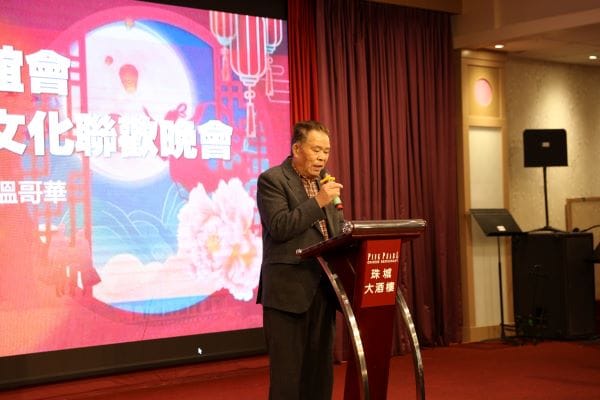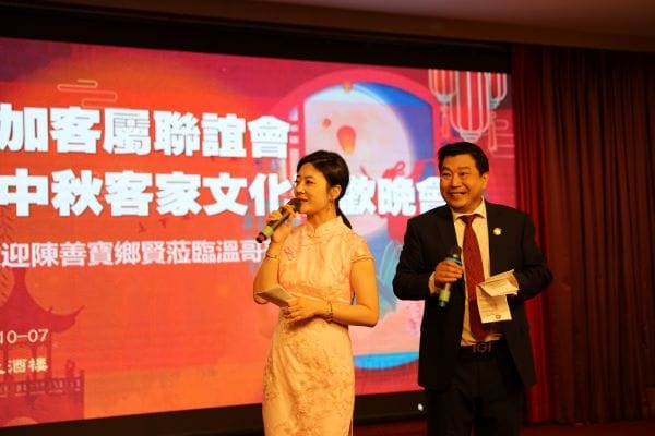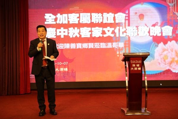 全加客属联谊会会长范佐研致欢迎辞。他表示,希望通过此次活动凝聚海内外客家乡情,传承文化根脉。范会长在致词中说:“今天的晚會,不僅是为了慶祝這個美好的節日,还有幸邀请客家文化大使,我們梅州市作曲作词歌唱家陳善宝老師与我們共庆佳節,陈老師给我们表演節目,不仅是傅𠄘和发扬我們客家優秀的傳統文化,更让我們重溫那份濃濃的鄉情和同根同源的血脉之情”,今天的晚会,也必将增进客家人团结友爱,互帮互助,为促进和推动加中之间的文化交流,世代友好做出贡献。